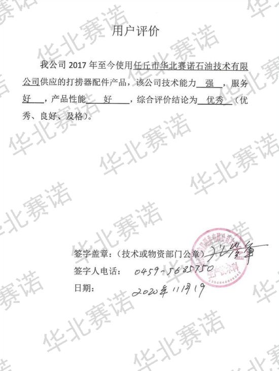 "Enthusiasm, integrity and punctuality" are our technical support and after-sales service purposes. "Customer first, quality first, timely response" is our service principle. We are a professional research team. He has rich on-site experience and the ability to solve various complex technical problems. The cooperative manufacturers are extensive. Various types of mechanical products can be designed and processed according to user requirements. At the same time, in order to better serve oil drilling and fishing. We are also constantly innovating in technology and expanding more professional fields.